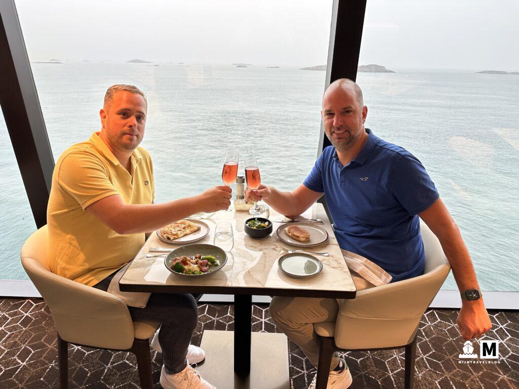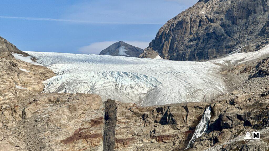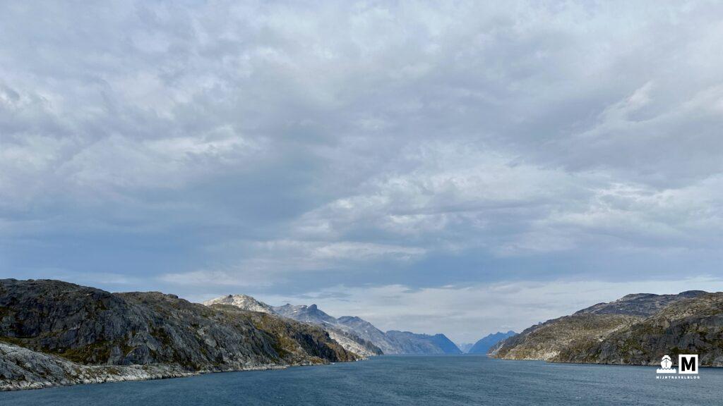 Het schip is onderweg naar Groenland. Bijzonder, we waren hier 2 maanden geleden nog. Eén haven die we nu gaan bezoeken hebben we eerder gedaan. De rest alles nieuw. Na de zeedag begon de ochtend mistig maar hoe dichter we bij land kwamen hoe beter het werd. Gelukkig maar want we varen door de Prince Christian Sund: een smalle doorgang van oost naar het westen op het meest zuidelijke deel van het eiland. Hoe verder landinwaarts hoe mooier en dramatischer het landschap werd. Onbeschrijfelijk hoe mooi het hier is. De gletsjers steken mooi af tegen de blauwe luchten. Het is ook niet heel erg koud. Zal tussen de 5 a 10 graden zijn dus ook buiten op het dek in de zon is het nog wel even te doen. Deze dag varen we bijna 7 uur lang door dit soort landschappen om uiteindelijk in de Labrador Zee uit te komen. Prima dag ook om verder het schip te ontdekken. Elke bar moet je toch een keer geweest zijn. Eten doe je in de avond in één van de vijf restaurants die inclusief zijn. Mocht je willen kan je ook, tegen bijbetaling, naar een restaurant waar elke drie maanden een team van een Michelin restaurant de keuken draait.