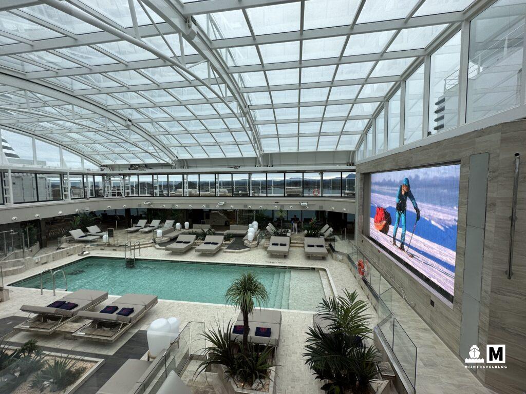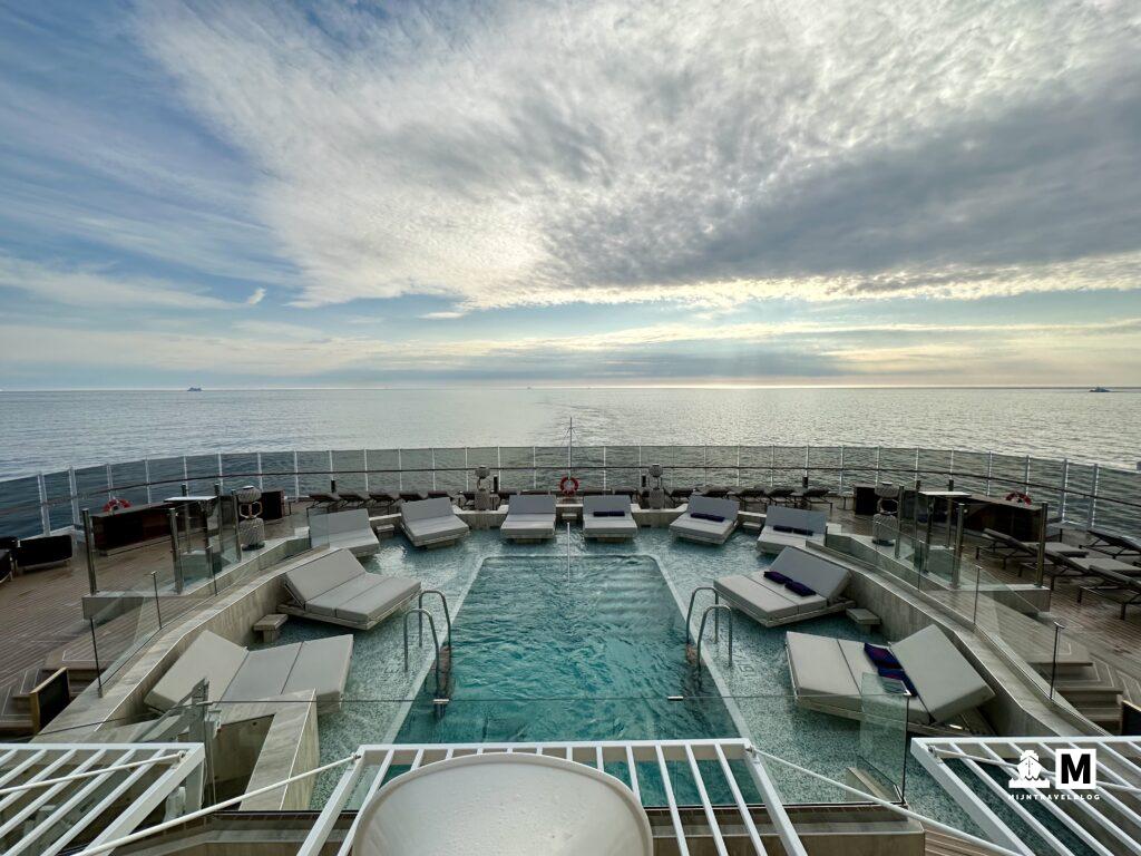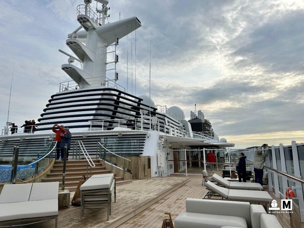 De start van de reis had niet beter gekund. Wat heeft IJsland ons verrast. Wat een indrukken hebben we opgedaan. Na IJsland hadden we eerste een volle dag op zee. Ook wel erg prettig. Sinds inscheping elke dag een haven, dus nog niet echt tijd gehad om het schip de verkennen. De Explora 1 is een gloednieuw schip van de rederij Explora Journeys. Een nieuwe rederij die vooralsnog 6 schepen in bestelling heeft staan. Alle schepen hebben alleen maar suites en wij hebben een Premier Penthouse suite. Erg prettig, we kunnen hier wel aan wennen. Het schip is heel licht qua kleurstelling en oogt heel rustig. Ze willen het gevoel van een boutique hotel geven en dat is ze gelukt. Er is capaciteit voor iets meer dan 900 gasten en wij varen er nu met ±600. Overal is het rustig, eten is heerlijk en het binnenzwembad is groot. We hebben grotere schepen gehad met een veel kleiner bad.