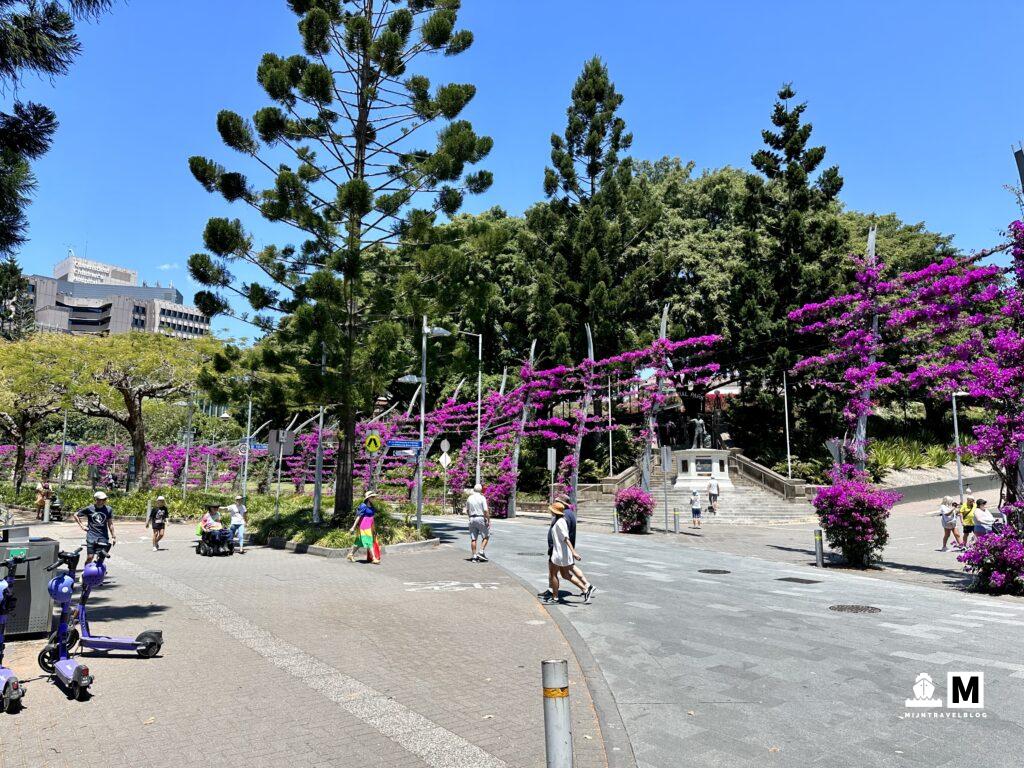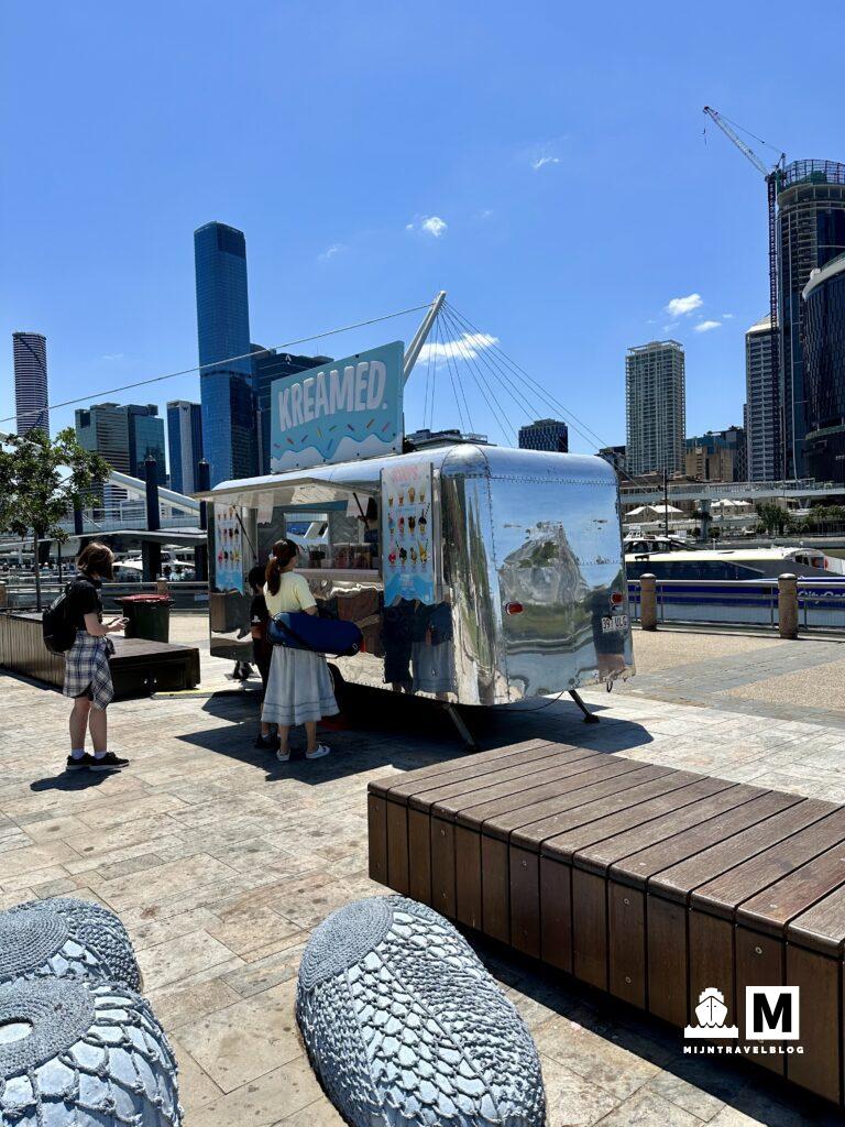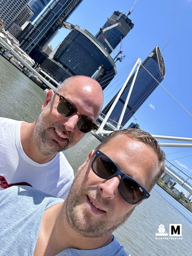 Brisbane was de volgende stop. Via volgers op Instagram hadden we al begrepen dat de nieuwe cruise terminal flink buiten de stad ligt en dat er geen openbaar vervoer beschikbaar is. Op hun eerdere cruise was het slecht geregeld met taxi’s en ook Uber bood geen oplossing. We hadden dus de keuze: of op een excursie mee of de shuttle van Celebrity. Excursies zijn we geen fan van en zeker niet als je kijkt naar de leeftijd van de medegasten. Conclusie voor ons was ook al dat Australië als bestemming op de wensenlijst staat met de camper of een auto. We kozen voor de shuttle naar de stad. Nooit geweten dat je in bussen rijen van 5 kan hebben maar hier kunnen ze dat. Was redelijk proppen.