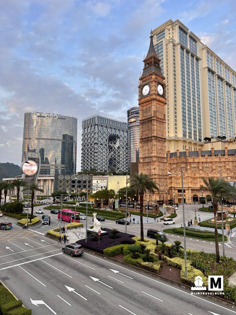 Op de luchthaven hebben de we koffers opgeslagen en met handbagage door naar de de busterminal iets naast de luchthaven. Echt een mega groot gebouw. Hier weer de paspoortcontrole door want we verlaten Hong Kong. Elke 5 minuten rijdt er een bus naar de andere kant van de brug. De rit duurt een 50 minuten want de brug is ruim 55 kilometer lang. Hier ga je weer een paspoortcontrole door en daarna pakten wij een taxi naar ons hotel op de Cotai Strip. In dit deel van de stad zitten alle grote bekende casino’s die je ook in Vegas vindt. Van de Parisian tot de Venetian. Ook in Macau heb je ze. De dag zat er bijna op dus na het inchecken in het hotel meteen aan de wandel. Op zoek naar eten en ook op zoek naar een casino. Beiden vonden we maar casino is echt qua sfeer en beleving niet te vergelijken met Vegas. Het is allemaal veel braver en rustiger. In Vegas staan veel meer gokkasten, Macau is bijna alleen maar tafelspelen. Een bar bezoeken? Die zijn er niet en ook in de winkelcentra er om heen niet. We zagen eerder ook al: Chinezen drinken niet.