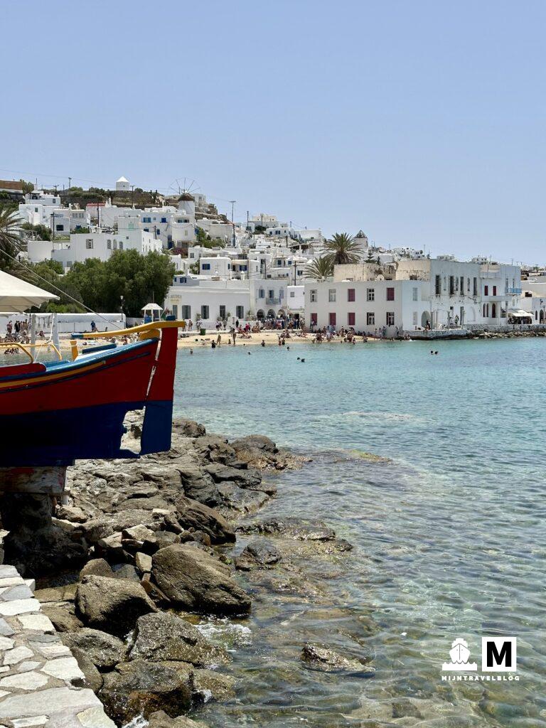 Na de lange dag bij de opgravingen kwamen we terug aan boord. Door de warmte zijn we goed moe. Overdag gaat het richting de 40 graden en als je dan lang op pad bent merk je dat in de avond. Na het eten nog een drankje in de Horizons bar en niet laat naar bed. De volgende stop is Mykonos. Al weer 11 jaar gelden dat we daar voor het laatst geweest zijn. Toen was het begin november en nu dus begin juni. In Mykonos is er één ligplek voor schepen en er zijn vier schepen in de haven. Wij hebben niet de ligplek en de we zullen per tender naar land gaan. Het schip ligt er wel goed lang. Tot 22.00 uur in de avond. Voor ons de kans om rustig op te staan want zoveel plannen hebben we toch niet aan land. Tegen 10 uur zaten we bij het ontbijt, heerlijk rustig want meerendeel van de mensen was al van boord. Rond 12 uur was het bericht dat je geen tickets meer nodig had voor de tender-boot. Je kon je gewoon melden. Voor diegene die het principe niet kennen: ze gebruiken de reddingsboten om de gasten aan land te krijgen. Dat doen ze de eerst periode op nummer. Dit nummer kan je ophalen en zodra ze het omroepen mag je aan land. Als de grootste groep van boord is kan je gaan wanneer jezelf wilt. De tender boten hadden fijn airco aan boord, zouden meer rederijen moeten doen, want de buitentemperatuur is rond de 37 graden en het moet nog 12 uur worden.