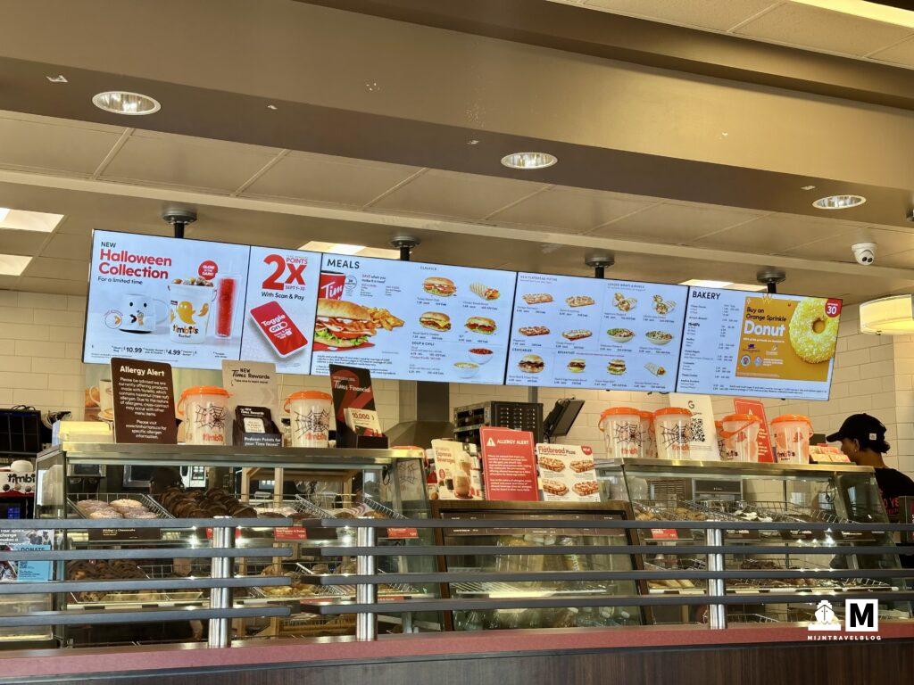 Wandelend maakt hongerig en we hadden vooraf al bedacht dat we niet aan boord wilden lunchen. We hebben heel de dag hier en dan is het ook wel lekker eens wat anders te eten en andere mensen te zien. Op een twee kilometer ligt het ‘centrum’ van de plaats en daar zou best wat te eten moeten zijn denk je zo. Nou nee dus. Uiteindelijk bij de Tim Hortons uitgekomen (combinatie van Starbucks en McDonalds zeg maar) en dat smaakte heel erg goed. Prima zo’n fastfood maaltijd na al dat heerlijke eten aan boord van de SIlver Endeavour. Wij waren niet de enige die dit plan hadden. Onderweg er heen en ook terug kwamen er diverse medegasten maar ook vooral personeel langslopen. Snap het ook wel want het was zulk fijn weer. Het zal rond de 20 graden zijn geweest en met waterdichte broek aan is dat best warm. Na de lunch terug naar het schip gelopen. In dit dorp was verder niet heel veel meer te beleven. Terug aan boord besloten we in de jacuzzi op het buiten dek te gaan. Voor op de boeg op deck 6 staat ie. Echt lekker plek en met de frisse herfstlucht helemaal fijn.