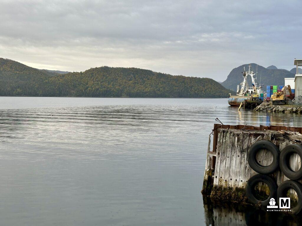 Gros Morne National Park staat bekend om zijn rustige fjorden en uitgestrekte landschap. De gids heeft helemaal verteld waarom het een UNESCO wereld erfgoed is maar de details zijn we kwijt. Geologisch zijn er heel veel bewijzen gevonden over het ontstaan van de continenten en de platen waarop wij leven. Samenvatting kort genoeg ? :). Wij gingen voor de hike dus de historische tour sloegen we over. Eigenlijk was heel het pad een helling omhoog. Best pittig eigen en blij met onze bergschoenen. Al snel kregen we het goed warm en de regen maakte het niet echt heel comfortabel. De begeleider was heel enthousiast en vertelde veel over de omgeving en de dieren. Op een gegeven moment zagen we in de verte een eland. Zo leuk. Te ver voor een fatsoenlijke foto met een telefoon maar toch. Eenmaal boven was het uitzicht erg mooi. Blij dat we dit hadden gedaan. Naar beneden ging het tempo wat omhoog en stonden op tijd weer beneden. Je kon met de bus terug naar het schip of nog een stuk wandelen. Wij kozen het laatste. We hadden gelezen over een leuk lunch restaurant in het dorp maar die ging pas later open. We waren nat en geen zin om te wachten. We hadden via via wel begrepen dat er lekkere sandwiches te kopen zouden zijn vlakbij de locatie waar het schip lag en ze hadden gelijk. De broodjes waren top! In de middag aan boord rustig aan gedaan want we hadden de beweging voor de dag wel gehad.